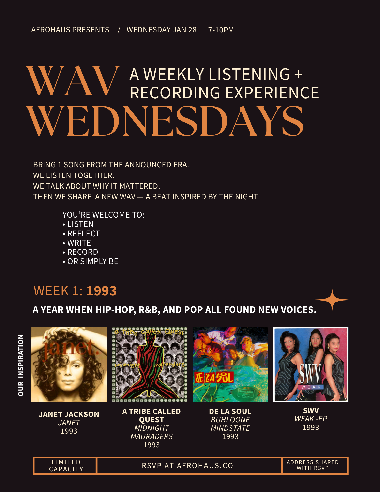 About: Afrohaus presents WAV Wednesdays, a weekly listening experience designed for people who love music, memory, and sound.
